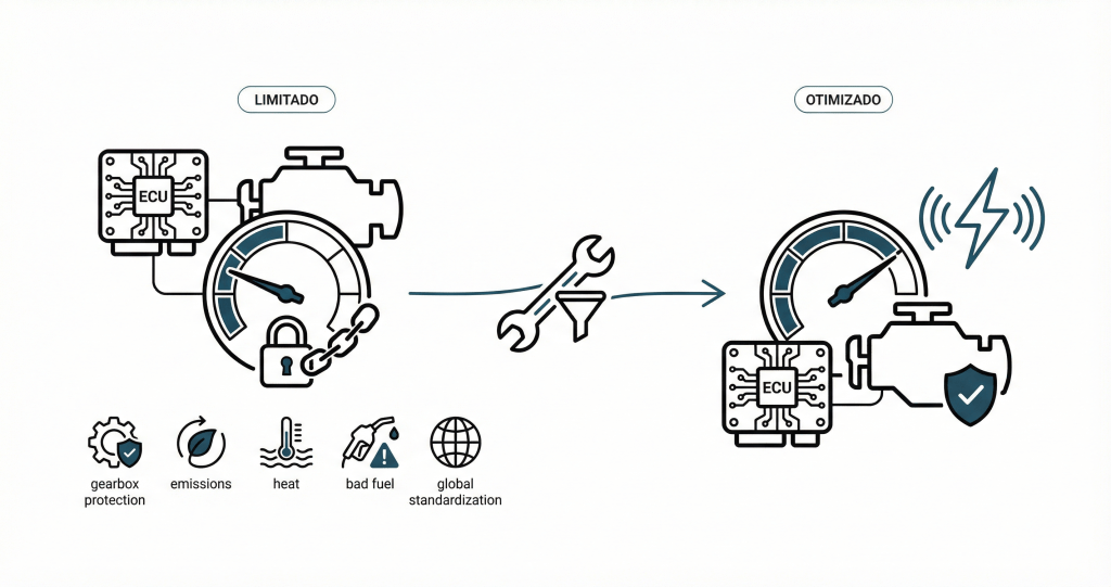 Muitos carros modernos limitam torque por proteção de câmbio, emissões, calor, combustível ruim e padronização global. Um remap bem feito pode otimizar isso com segurança, trazendo sensação de “carro acordou”.